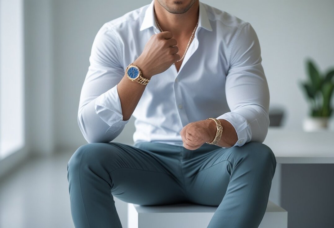 Det er vigtigt at vælge smykker med materialer, der enten komplementerer eller kontrasterer dit buksemateriale. Til uld- og flannelbukser fungerer tungere metaller som rustfrit stål eller tungt sølv godt, da de matcher stoffets fylde og tekstur.